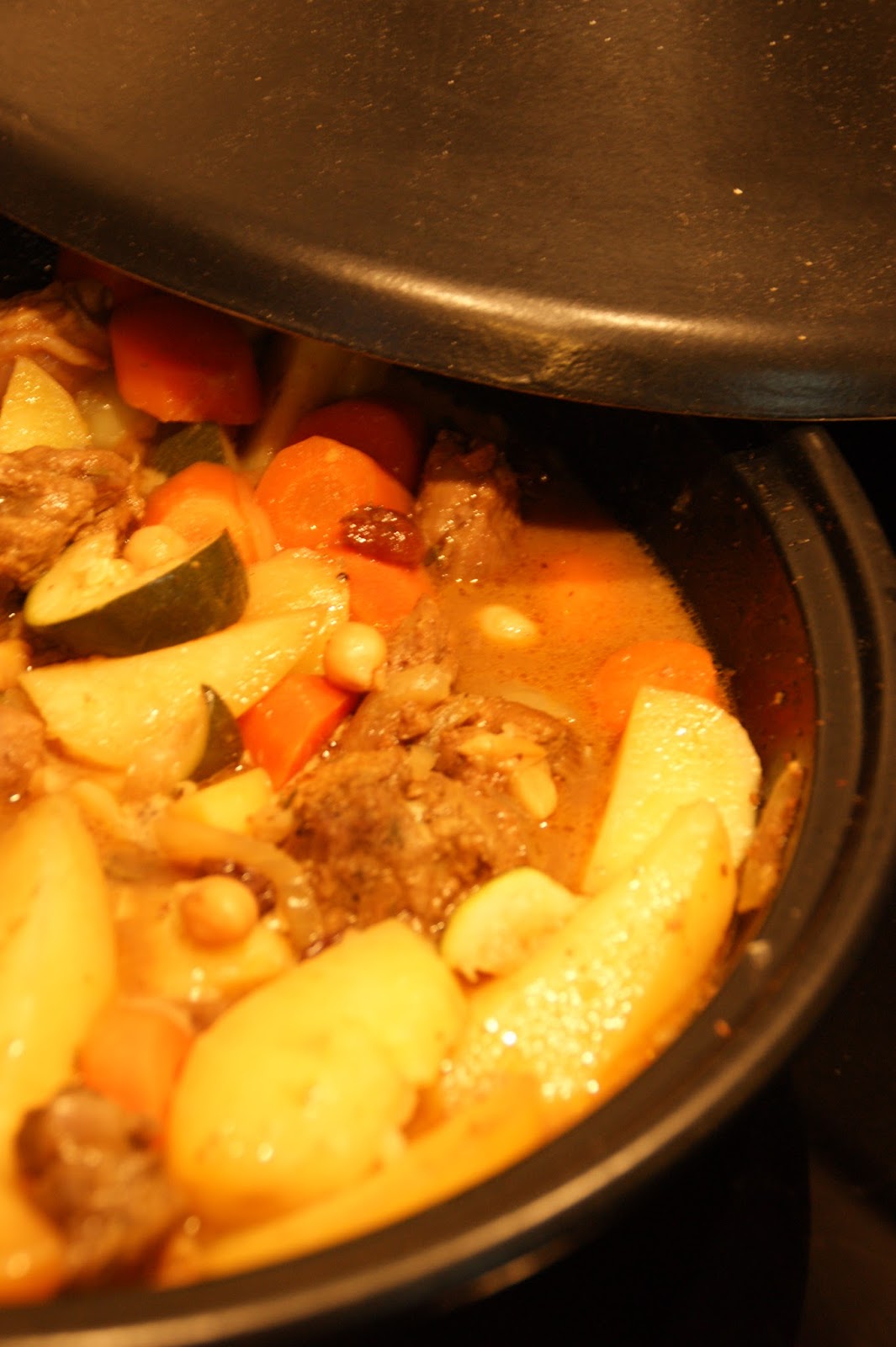 Kød og grøntsager til gryderetterne blev brunet af på komfuret i køkkenet og derefter sat ind i stenovnen et par timer indtil kød og grøntsager var møre. Dejlig nemt.